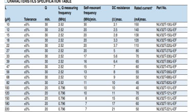 我們將NLV32T-221J貼片電感和GNL1210J221貼片電感做一下對比: