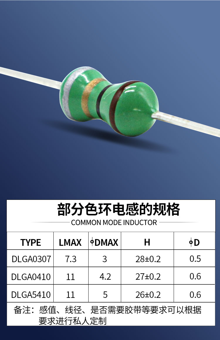 DLGA色環電感:尺寸:11.0*4.2;感量:0.22uH-1mH;精度:J級(±5%)、K級(±10%)、M級(±20%);電流量:100mA-1.4A;特點:高Q值,重量輕,自共振頻率高;適用于:電視、DVD、計算機、通訊產品等。詳情咨詢:0512-65368862。